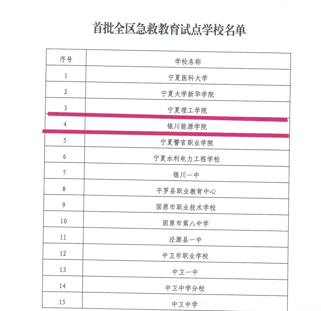 此次银川能源学院入选首批全区急救教育试点学校,有助于学校开展生命安全教育活动,增强学生社会责任感和尊重生命、珍爱生命意识,进一步提升师生急救教育思想认识,加强校园救护能力,营造浓厚的生命健康教育氛围,保护高校青少年生命健康,为社会培养乐于施救、敢于施救、善于施救人员。